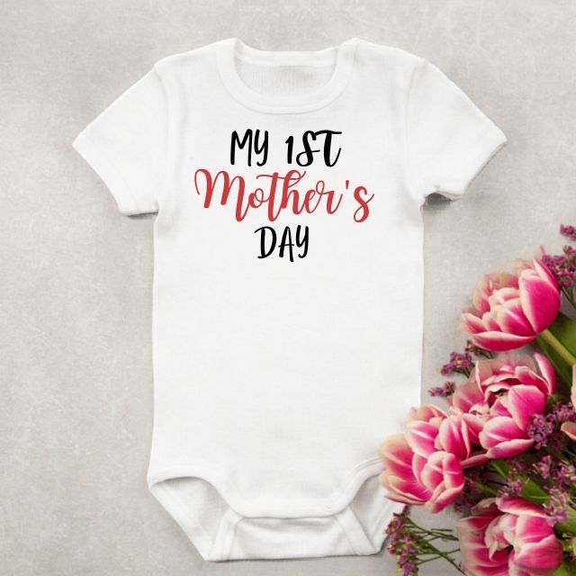 Our My 1st Mother’s Day baby onesie is designed to celebrate one of those special early milestones that families never forget.